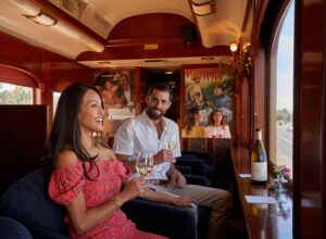 Picture this: Tables draped in white linen, silverware and crystal-clear glasses gleaming in the sunlight, etched glass partitions separating each table, mahogany paneling, and natural luxuriant wood tones all aboard a beautifully restored 1915 Pullman car. It’s a scene from the Gourmet Express, one that harkens back to a bygone era of travel and the […]